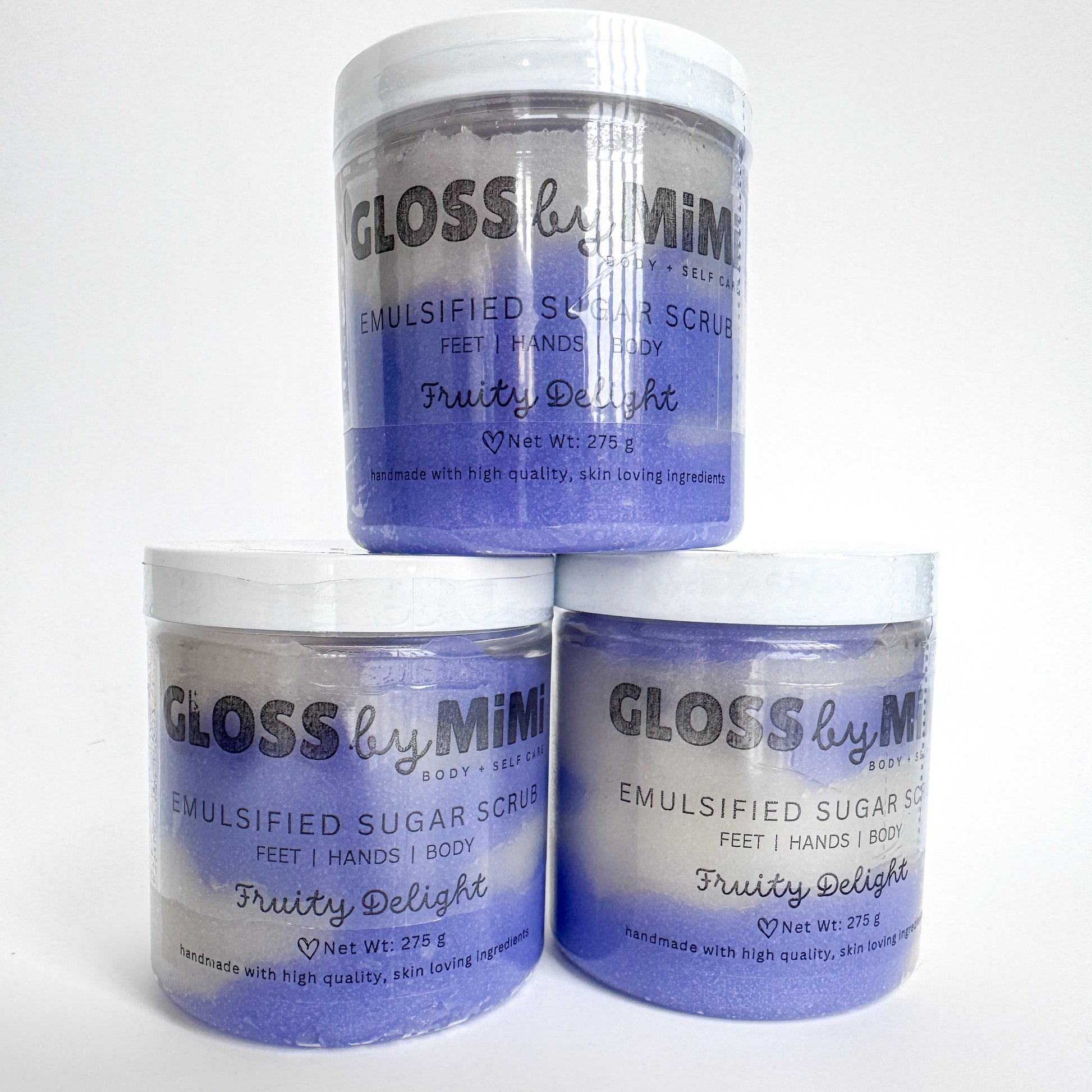 Indulge in a mouth-watering experience with our Fruity Delight Sugar Scrub. The dynamic scent of berries, apricot, lemonade, and coconut cream will leave you feeling refreshed and your skin hydrated. Our gentle exfoliating and lathering formula is perfect for dry skin. Say goodbye to dull and dry skin and hello to a blissful shower experience.